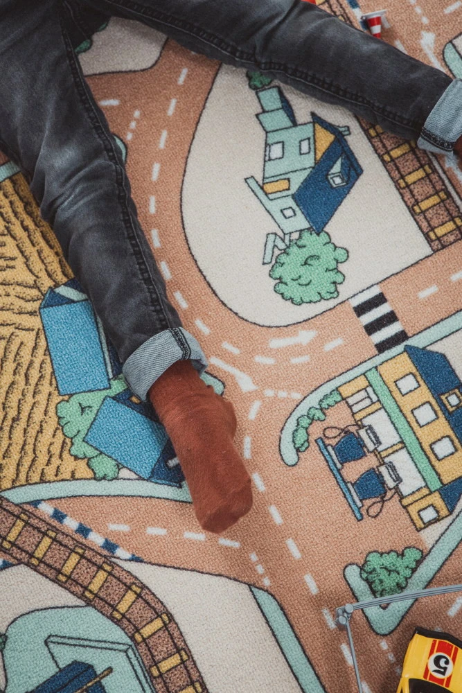 Dit vloerkleed is ideaal voor als je kindje begint met rollen en spelen op de vloer. Is je kleine gek op huisjes, wegen en treinen? Dan is dit vloerkleed helemaal perfect! Het Railroads kleed staat namelijk in het tegen van wegen en treinsporen. De onderzijde van het kleed heeft een anti-slip laag van latex, waardoor het kleed niet wegglijdt op een gladde vloer. Dat is wel zo veilig! Tevens heeft het kleed daardoor een isolerende werking. Hij is onderhoudsvriendelijk en heeft door zijn hoge kwaliteit garen een lange levensduur.